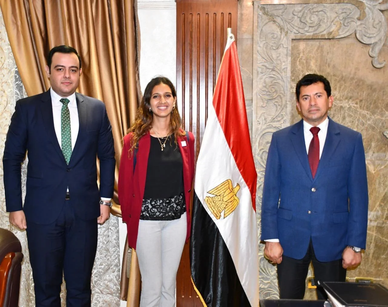 Omnia with Minister of Youth in Egypt H.E. Ashraf Sobhy