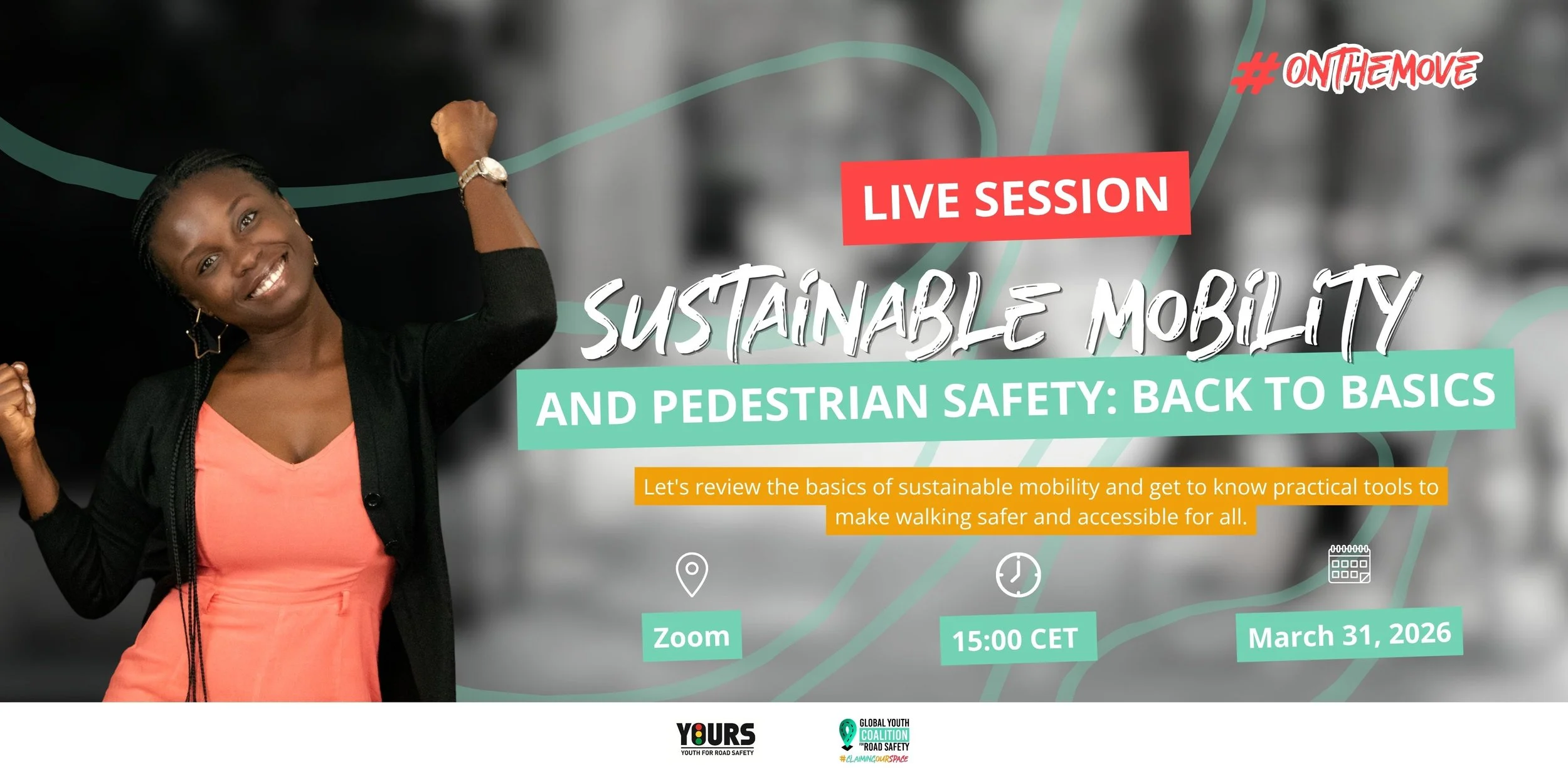 In the Live Session “Sustainable Mobility and Pedestrian Safety: Back to Basics”, led by YOURS – Youth for Road Safety and bringing together members of the Global Youth Coalition for Road Safety, we will unpack these ideas in a way that connects global concepts with real-life experiences.
